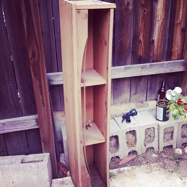 This is a hutch off an old desk. It’s my next garden project. Maybe I’ll put the mint in here. Put some wheels on it?
