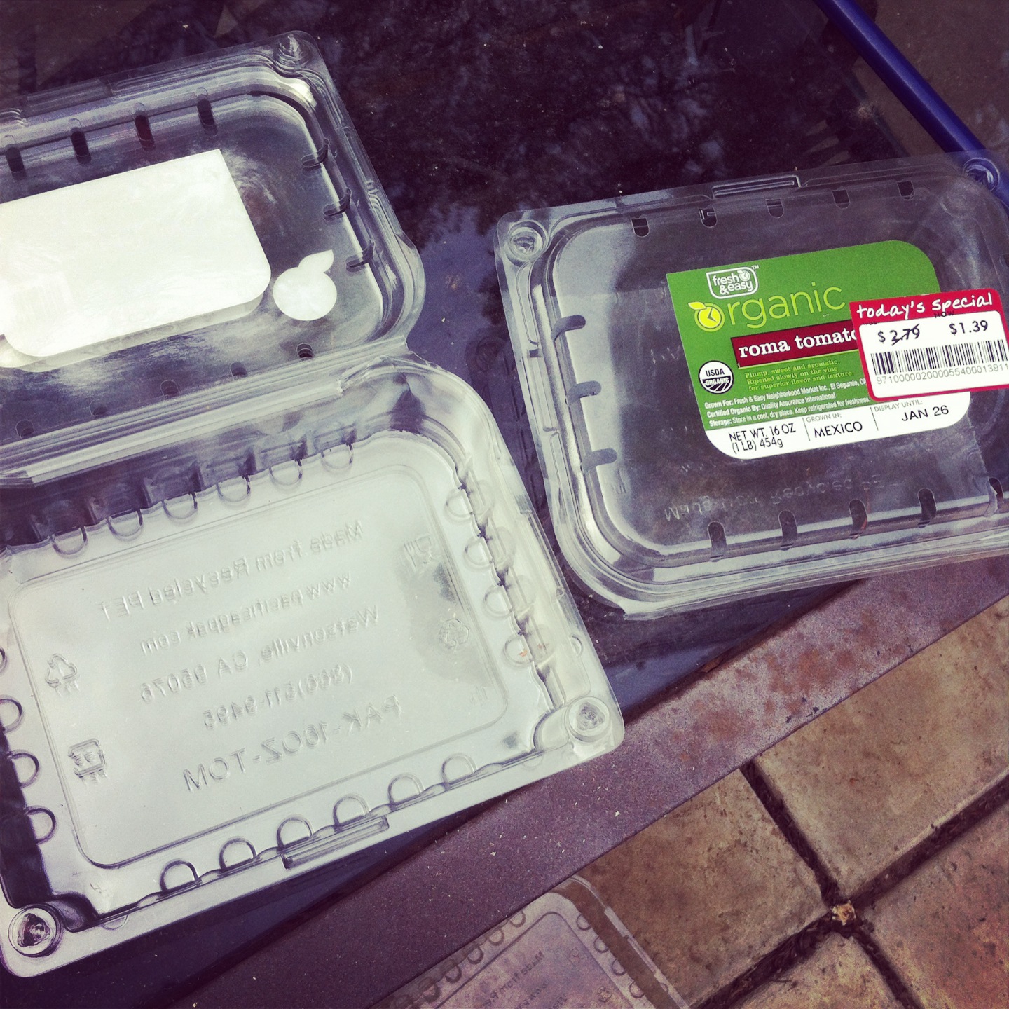 And lastly, a cute pic of some pickins from our own little garden that went into our dinner last night. This morning we took the recyclables again and got free organic produce from the Farmers Market. I’d love to hear from others who find ways to get free or inexpensive organic produce!