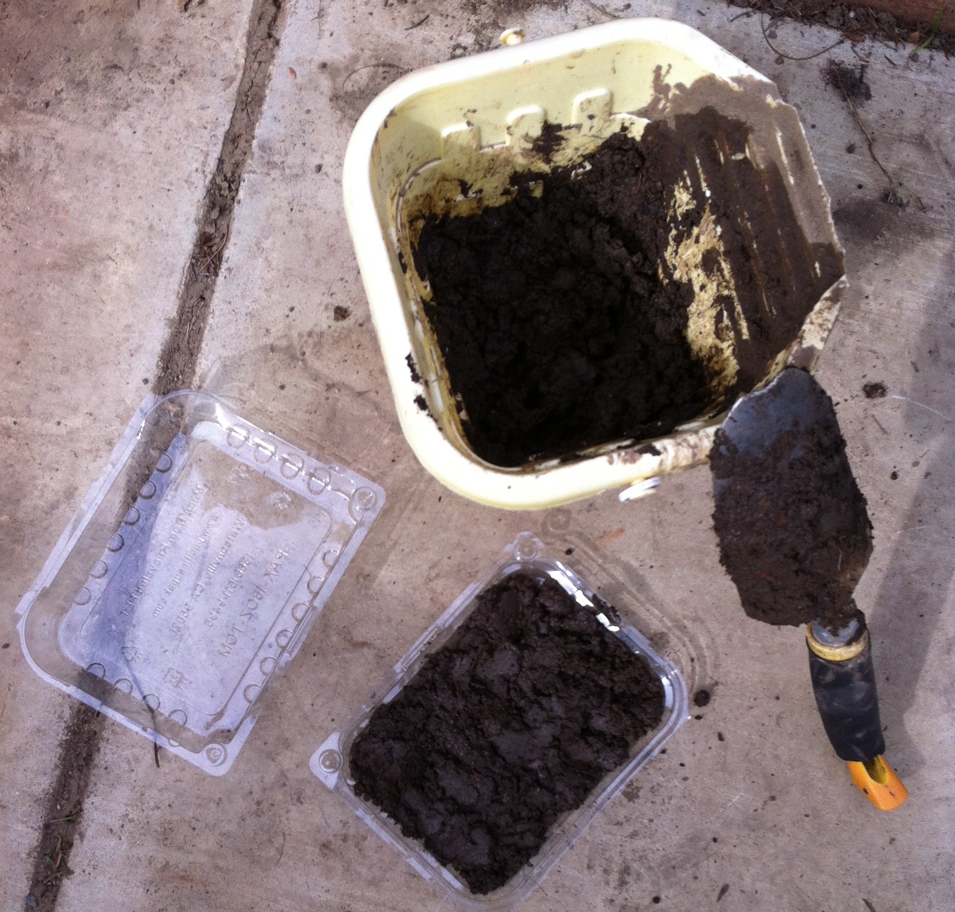 Filled it with rich soil and compost that i had mixed together earlier. I added water to make sure it was a nice moist mixture, kind of like brownie batter!